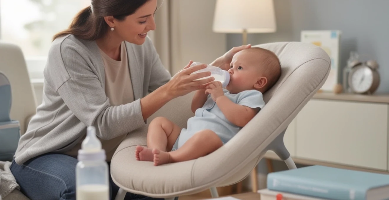 Pour un bébé nourri au biberon avec du lait infantile, la fréquence tourne plus souvent autour de 5 à 7 repas par jour, avec des volumes de 120 à 150 ml par prise à 2 mois. Dans ce contexte, un intervalle de 3 h est fréquemment bien toléré, à condition que la courbe de poids soit harmonieuse et que le nourrisson paraisse satisfait entre les biberons. En cas d’alimentation mixte, l’organisation dépendra de la place respective des tétées et des biberons dans la journée, l’objectif étant de maintenir une stimulation suffisante du sein si l’on souhaite poursuivre l’allaitement.